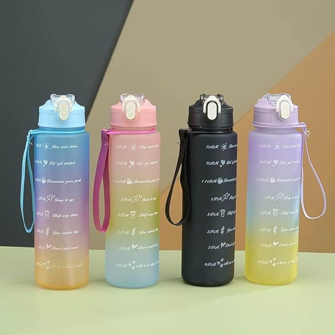 Sports Water Bottle Matte Finsih with Motivational Quotes - BPA Free Large Capacity Portable Water Bottle